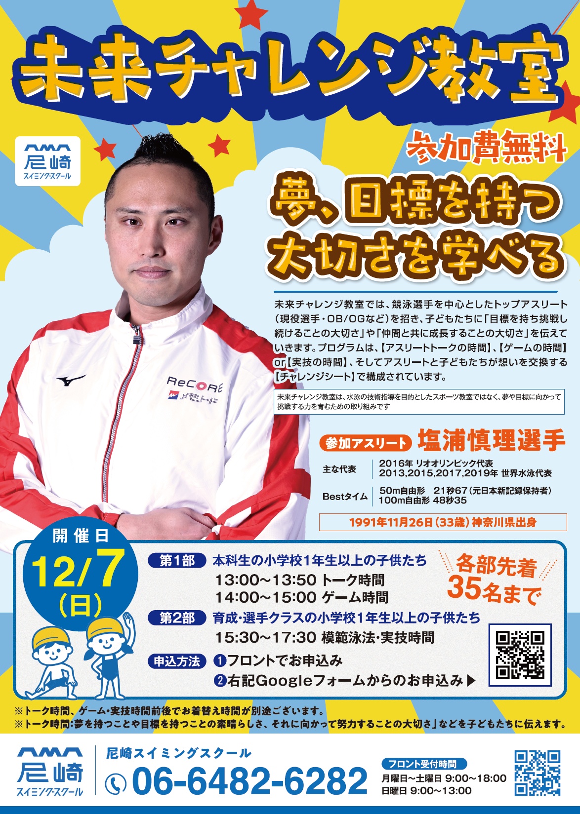 「未来チャレンジ教室」第一回開催のお知らせ in 尼崎スイミングスクール